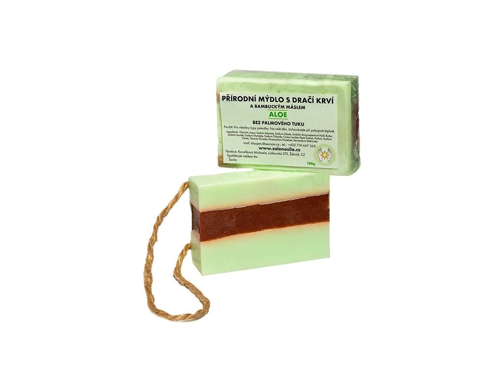 Prírodné mydlo s bambuckým maslom a dračou krvou (Sangre de Drago) s veľmi príjemnou vôňou Aloe vera.